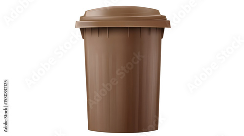 Dark brown trash bin with closed lid and rectangular shape isolated on white background