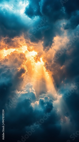 Dark clouds with the sun breaking through, stormy weather, dramatic lighting