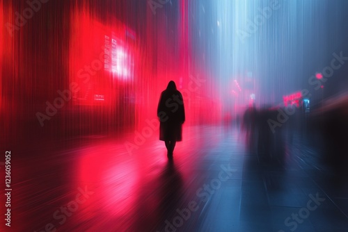Dark figure navigating through a neon-lit urban landscape demonstrating cybersecurity threats and anonymity
