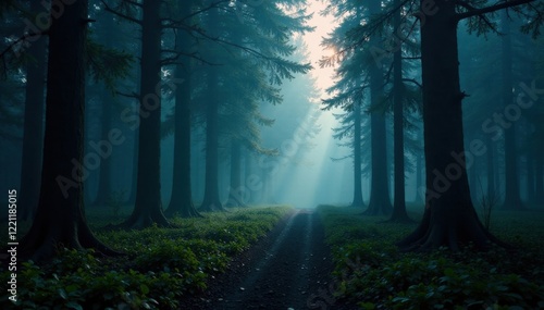 Dark forest with misty atmosphere , forest, wildlife, twilight