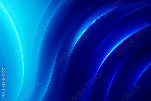 Dark gradient with glowing green and blue streaks blending into abstract fluid luminous curved wave patterns