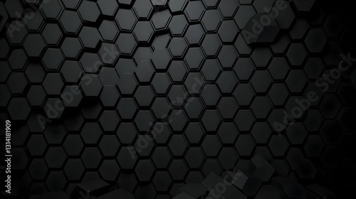 Dark Gray 3D Hexagonal Pattern Background Texture With Subtle Lighting And Deep Shadows Abstract Geometric Design
