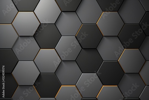 Dark Gray and Orange Hexagon Background Modern Dark Abstract 3D Background, 3D Illustration.