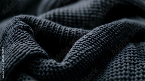 Dark gray knitted fabric texture, close-up view, soft folds, textile background, for apparel design