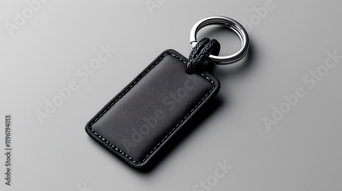 Dark Gray Leather Rectangular Keychain with Metal Ring