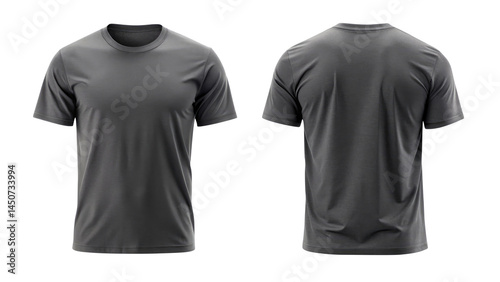 dark gray t shirt round neck front and back side template isolated on transparent white background, clipping path