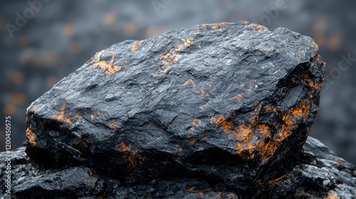 Dark grey rock, orange highlights, blurred background, geological texture, ideal for backgrounds