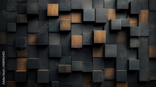 Dark Grey Square Blocks Wall Texture with Rough and Textured Appearance Against Dark Background in Low Angle View