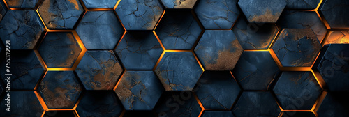 Dark hexagonal abstract technology pattern. Gray dark, gold, black colors. Hexagonal gaming tech background. Geometric surface with a modern minimalist aesthetic