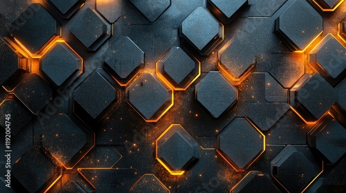 Dark Hexagonal Sci-Fi Background with Orange Glow