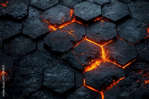 Dark Hexagons and Lava Concept Digital Background, Generative AI