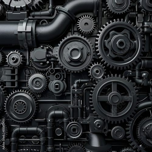 dark industrial 3D render: vehicle parts pattern with car gears and pipes