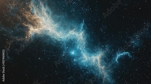 Dark interstellar space depicted in a 3D cartoon rendering A 2D illustration featuring stars in deep space a blue cold nebula and a dark night sky