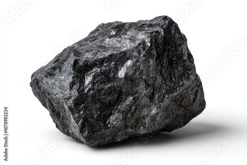 Dark, irregular rock against white background