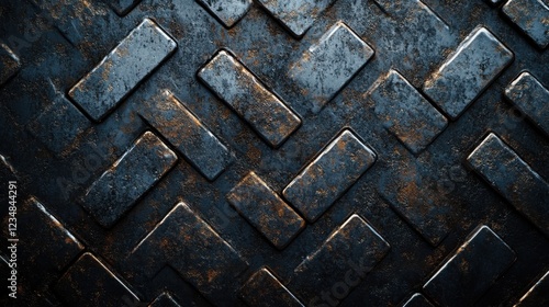Dark metallic background with diamond pattern and industrial grunge texture for design use