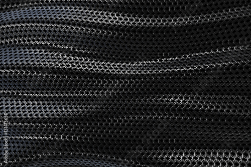 Dark metallic chain armorabstract wave curve background. 3D rendering