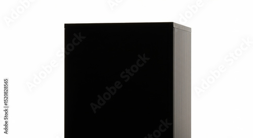 Dark, modern cabinet corner against white background. Empty, still cabinet component, showcasing modern design style.