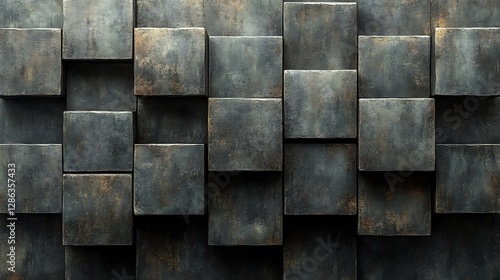 Dark moody cubes subtly shift creating textured depth. AI Generated