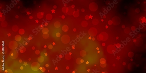 Dark Orange vector pattern with circles, stars. Illustration with set of colorful abstract spheres, stars. Pattern for design of fabric, wallpapers.