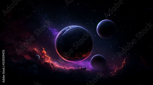 Dark Planets Cosmic Scene Digital Rendering