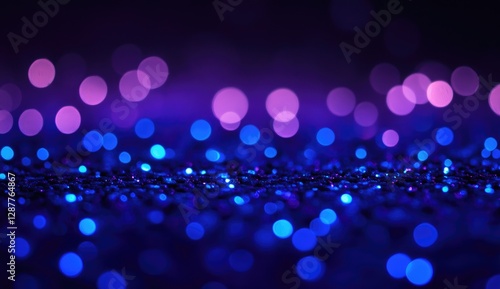 Dark purple background with glowing blue dots on the ground, creating an abstract and futuristic atmosphere.