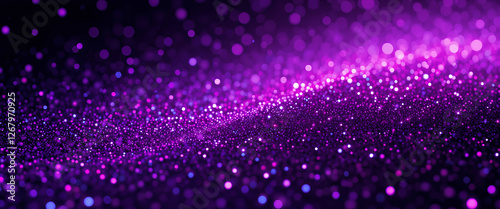 Dark purple glitter sparkle background with shimmering confetti texture for festive invitations and celebrations