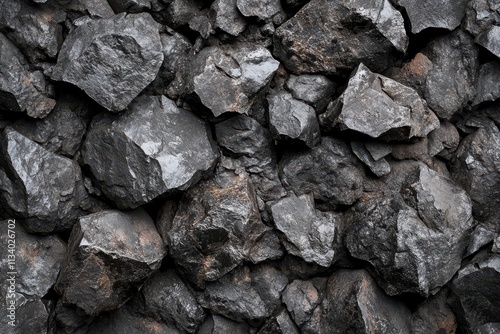 Dark, rough-textured volcanic rocks densely packed. Ideal for backgrounds, textures, and design projects needing a rugged aesthetic.