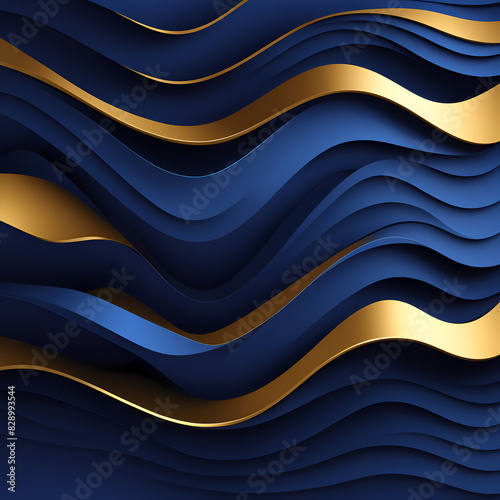 Dark sapphire blue and gold abstract background with 3D texture, wavy lines and gradations, dynamic shape