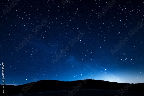 Dark sky with a few stars and a hill in the background