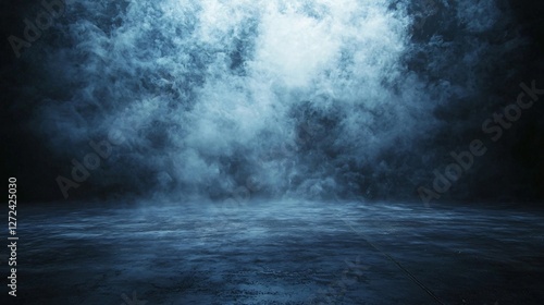 Dark smoky stage background, empty floor, dramatic lighting, ideal for product display