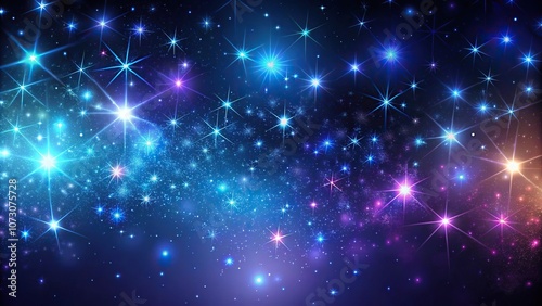 Dark space background with stars twinkling in shades of blue and purple, universe, infinite, space