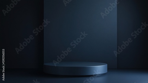 Dark studio, round podium, product display, minimal design, for presentation, photorealistic