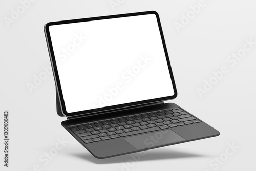 dark tablet device 13 inch with empty display and folio keyboard on clean background 3d render illustration