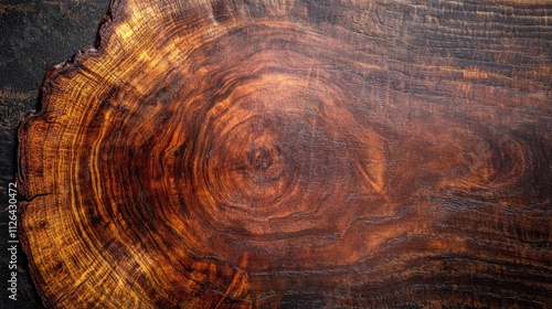 Dark timber wood texture with intricate grain patterns and subtle shadow vignette on a contrasting wall background