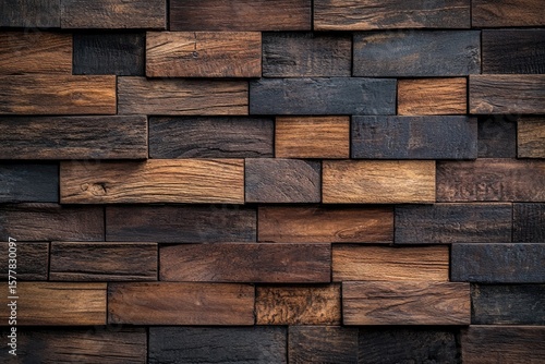 Dark wooden panel background with natural grain texture and layered rectangular blocks in rich brown tones, perfect for design backdrops and rustic interior visuals