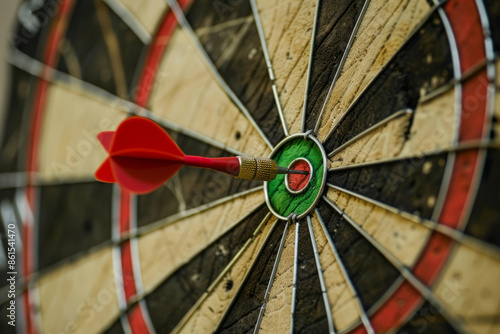 Dart hitting the bullseye on a dartboard. Business target or goal success, winner concept