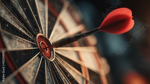 Dart lands in bullseye on dartboard, demonstrating precision in indoor game