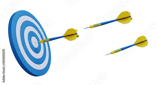 Dartboard with darts missing the bullseye illustrating missed opportunities and strategic failure in business transparent background