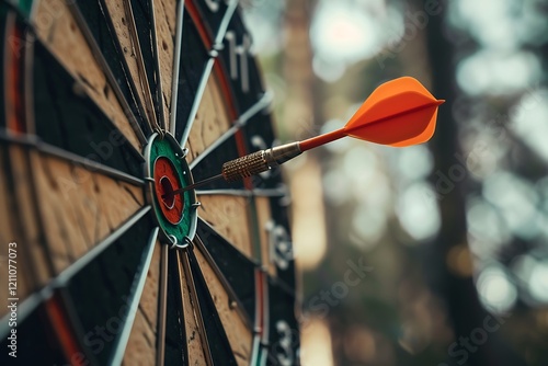 Darts arrows in the target center of dartboard. Business success and achievement concept