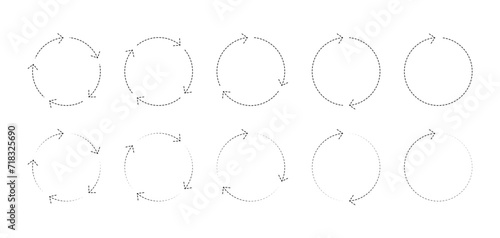 dashed rotating arrows around the circle. rotating arrow signs. ring arrow signs