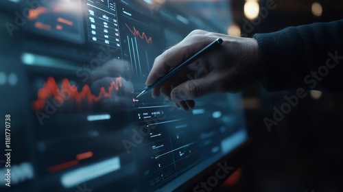 Data Analysis: A Hand Interacting with Futuristic Interface