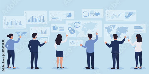 Data analysis, marketing research, statistics visualization graph and chart model, prediction benchmark or analytics diagram, insight and trend, business people look