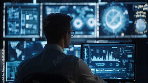 Data analysis monitoring control room digital visualization high-tech environment professional perspective cyber intelligence