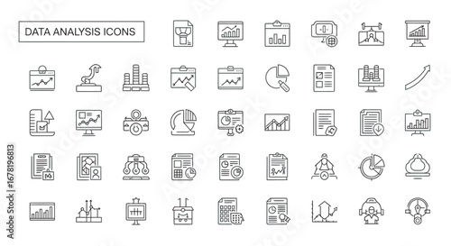 Data analysis symbols representing statistics and trends displayed as line art for business intelligence and reporting, conveying a modern and minimalist theme.