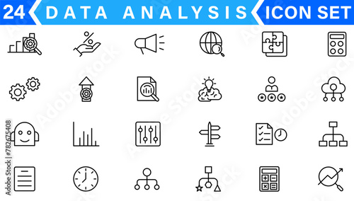 Data analysis thin line icon set. Data processing outline pictograms for website and mobile app GUI. Digital analytics simple UI, UX vector icons