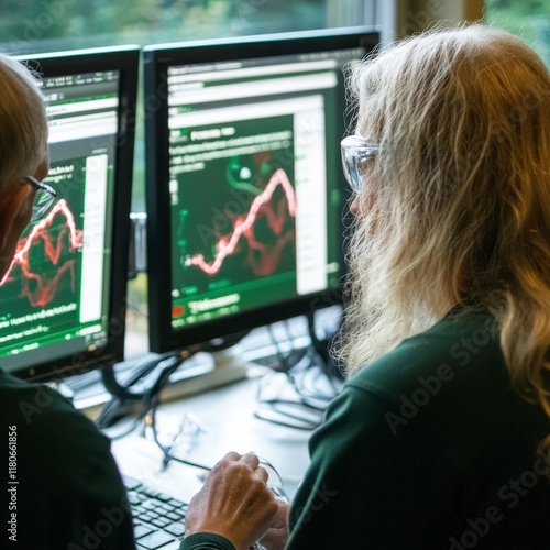 Data Analysts Reviewing Financial Charts on Monitors