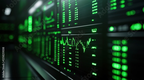 Data analytics display with green financial metrics