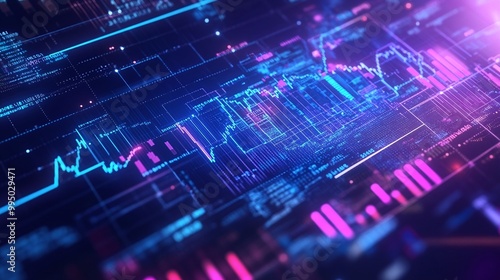 Data analytics visualization with colorful graphs and charts on a digital interface.