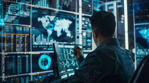 Data Engineer Analyzing Code on Dual Digital Screens