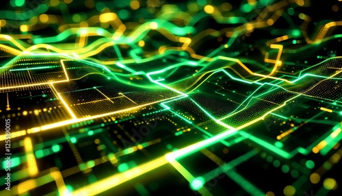 Data Flow Visualization Futuristic Digital Grid With Green and Yellow Light